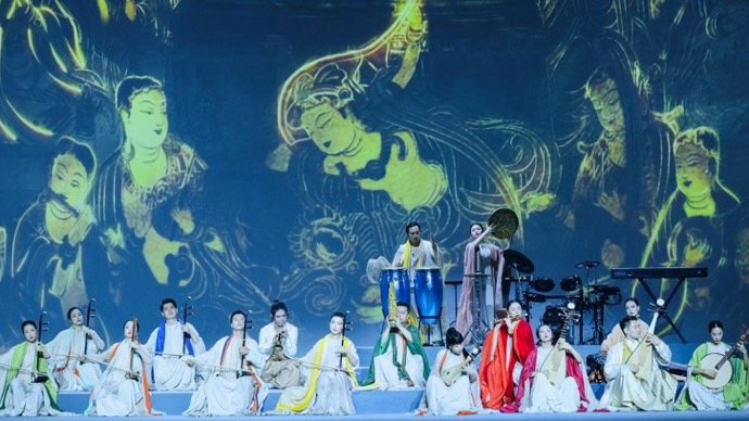 开场曲《汲古》以中国最古老的吹管乐器骨笛启幕瑞和网 ,随后篪、箫、笛等传统吹管乐器次第登场,共同演绎“天地玄黄,宇宙洪荒”的意境,展现中华文明源远流长的生命力;《水行》融合古老的尺八与现代手碟,诠释“上善若水”的东方哲学;《墨戏》呈现中国书法主题,筝如挥毫泼墨、舞者似灵动笔锋、王羲之名作《兰亭序》于多媒体画面缓缓铺陈,三者共同构建起“仰观宇宙之大,俯察品类之盛”的传统美学意境;《山水》引领观众回归自然,体悟“天地人和”的哲学境界……